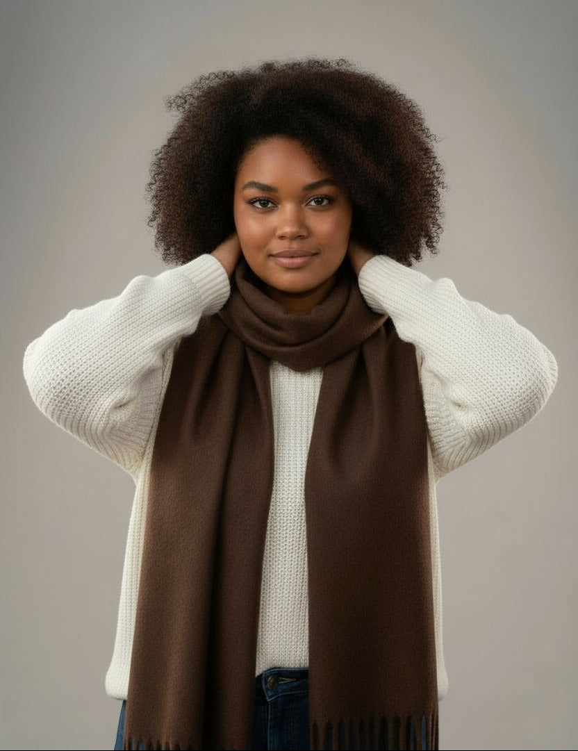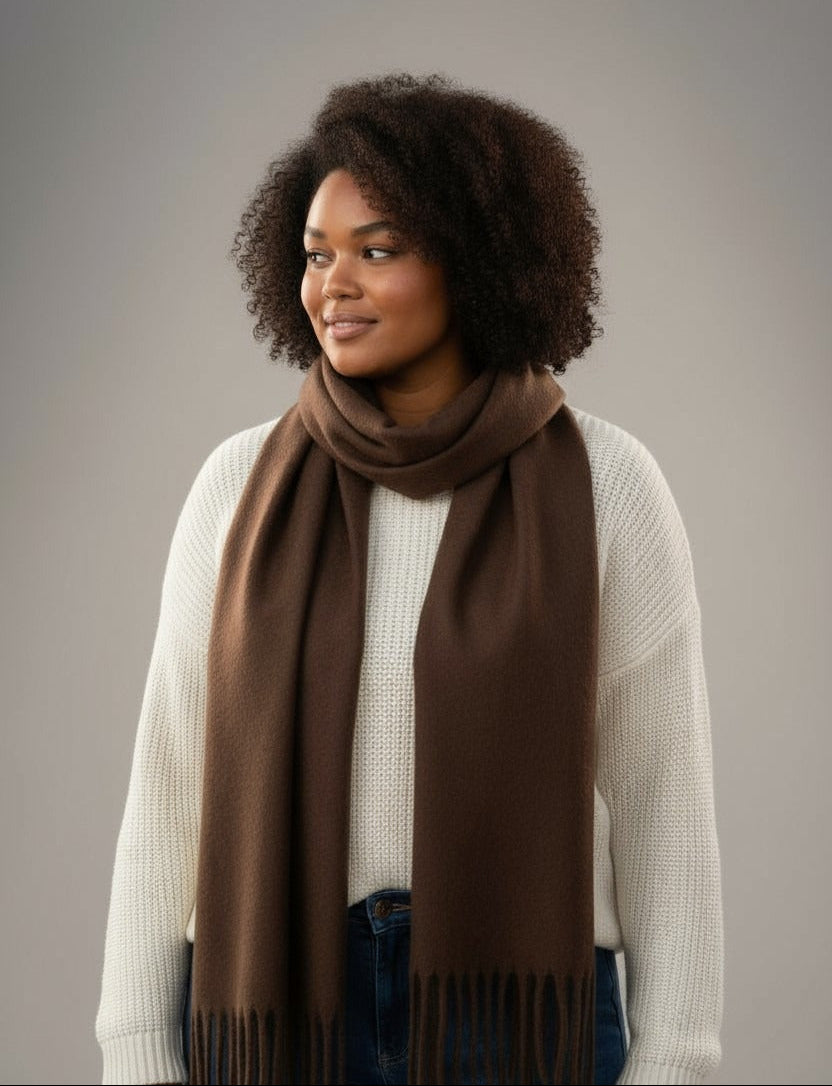 NANA sjaal effen met franjes – Zacht & elegant (Bruin)