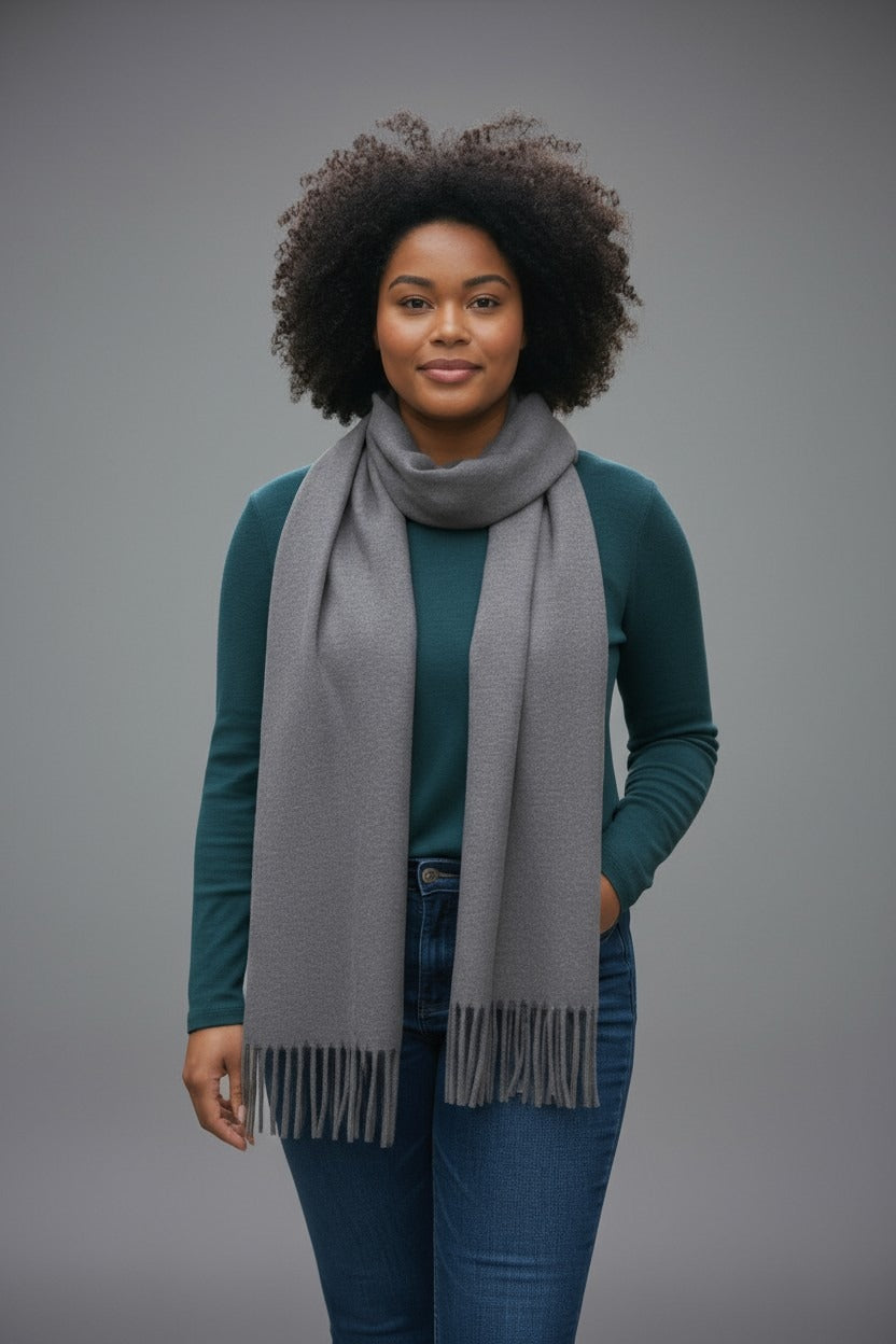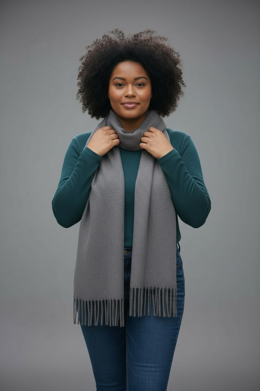 NANA sjaal effen met franjes – Zacht & elegant (Grijs)