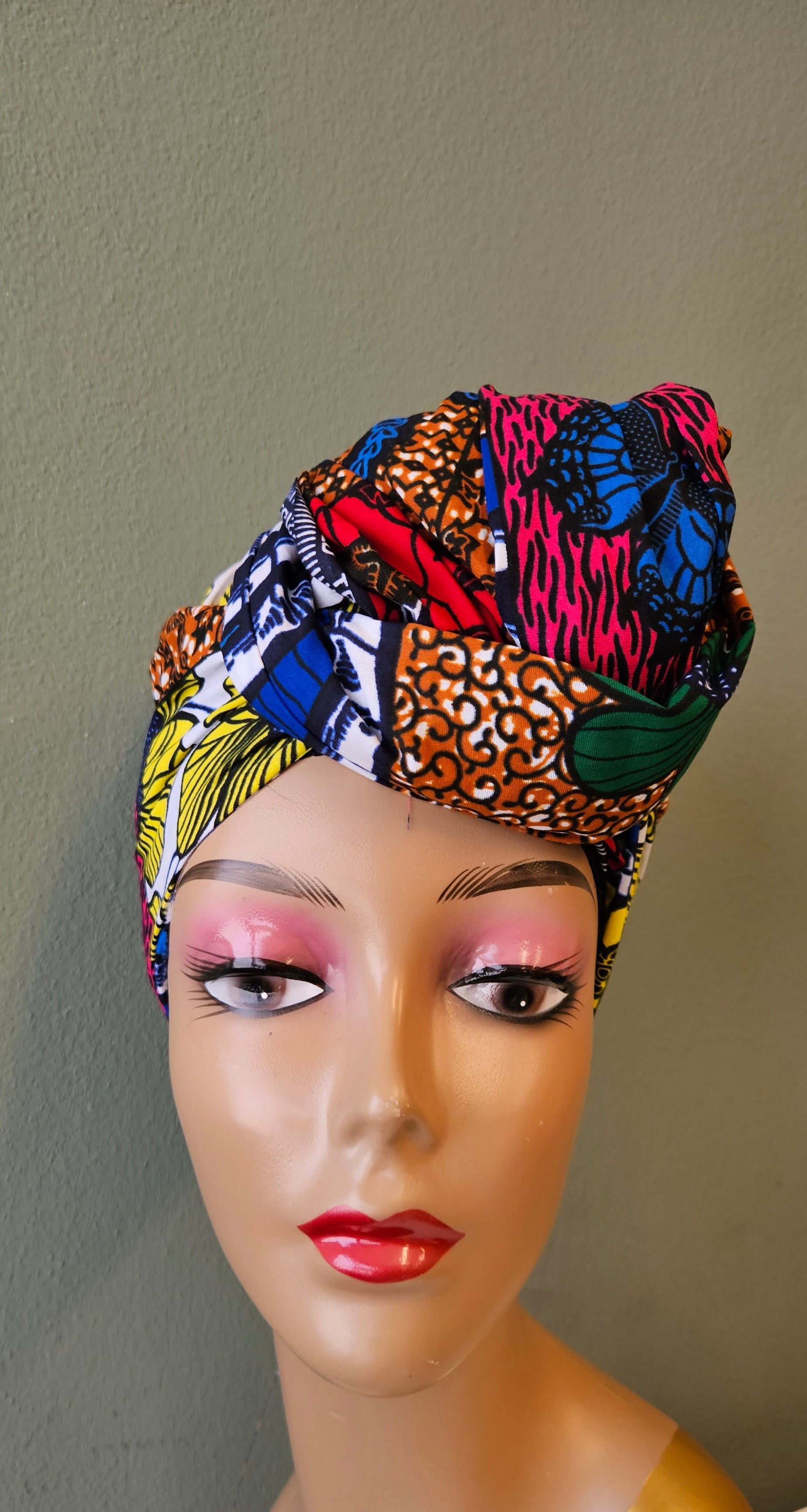 Deze headwrap met Afrikaanse print combineert een aantal kleurrijke kleuren en een diverse Afrikaans patroon en is praktisch, veelzijdig en indrukwekkend.