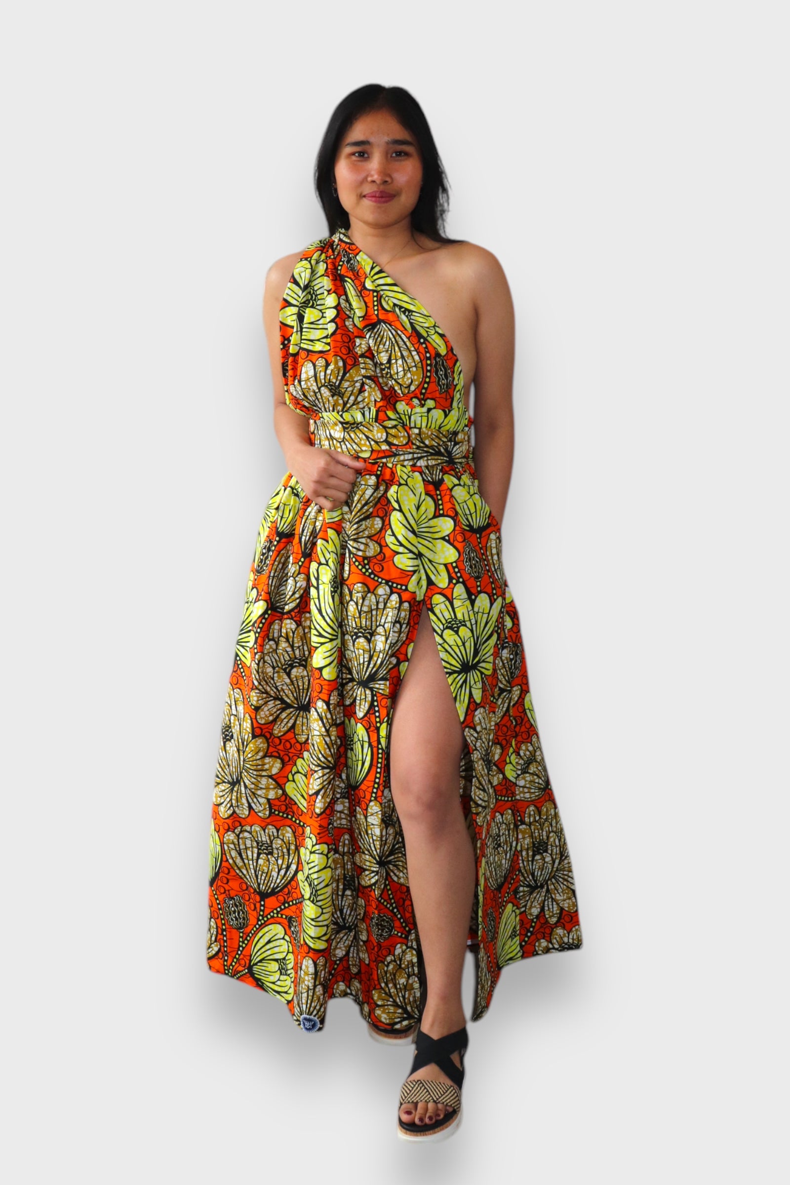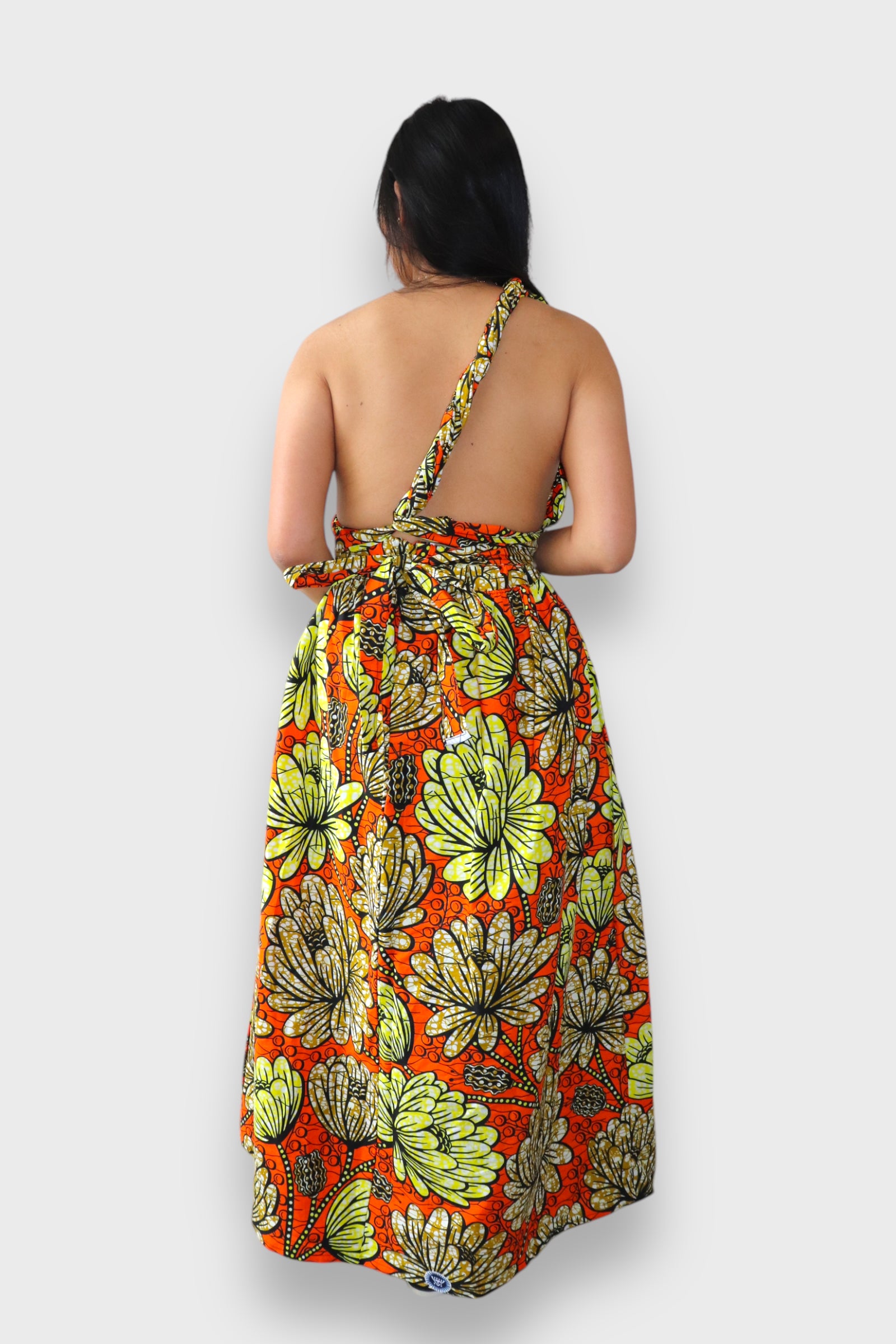 Infinity Multiway Maxi Jurk van Afrikaanse Print - Oranje/Geel