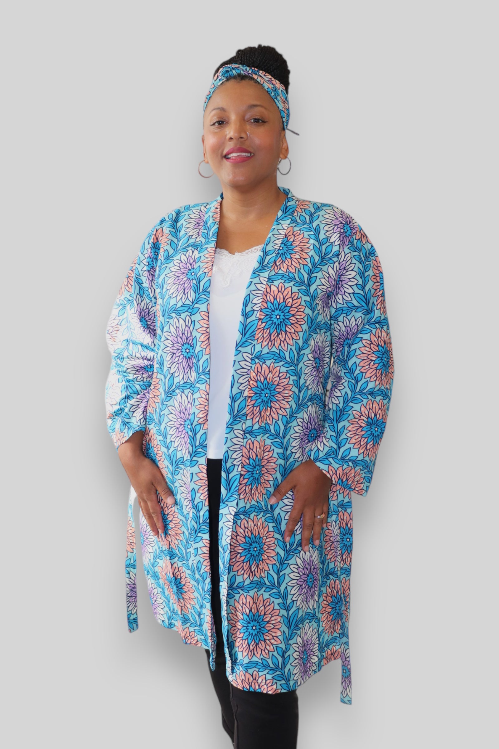 Kimono Vest in Afrikaanse Print - Blauw/Roze