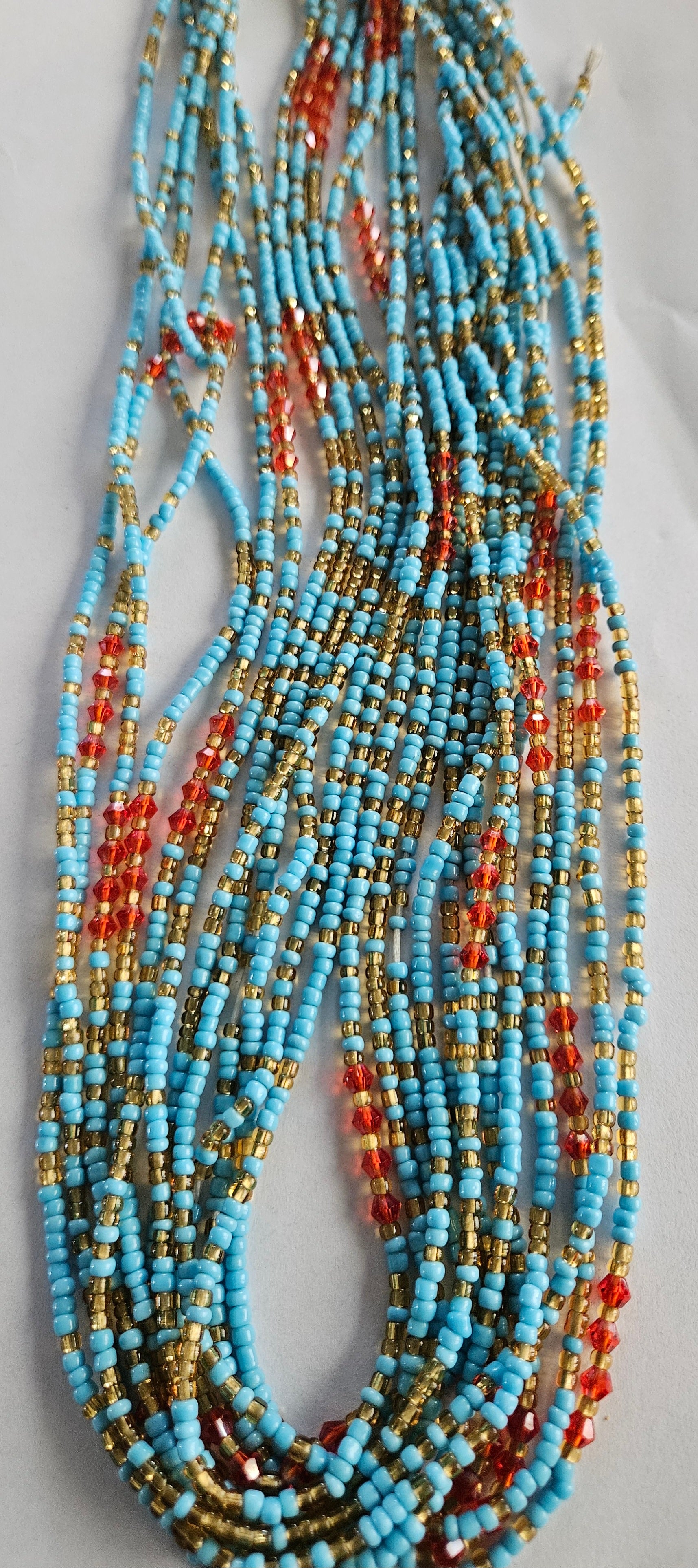 Voeg een vleugje Ghanese cultuur en elegantie toe aan uw stijl met onze prachtige Ghanese taillekralen. LET OP: ketting moet u zelf vast maken is niet van elastiek.