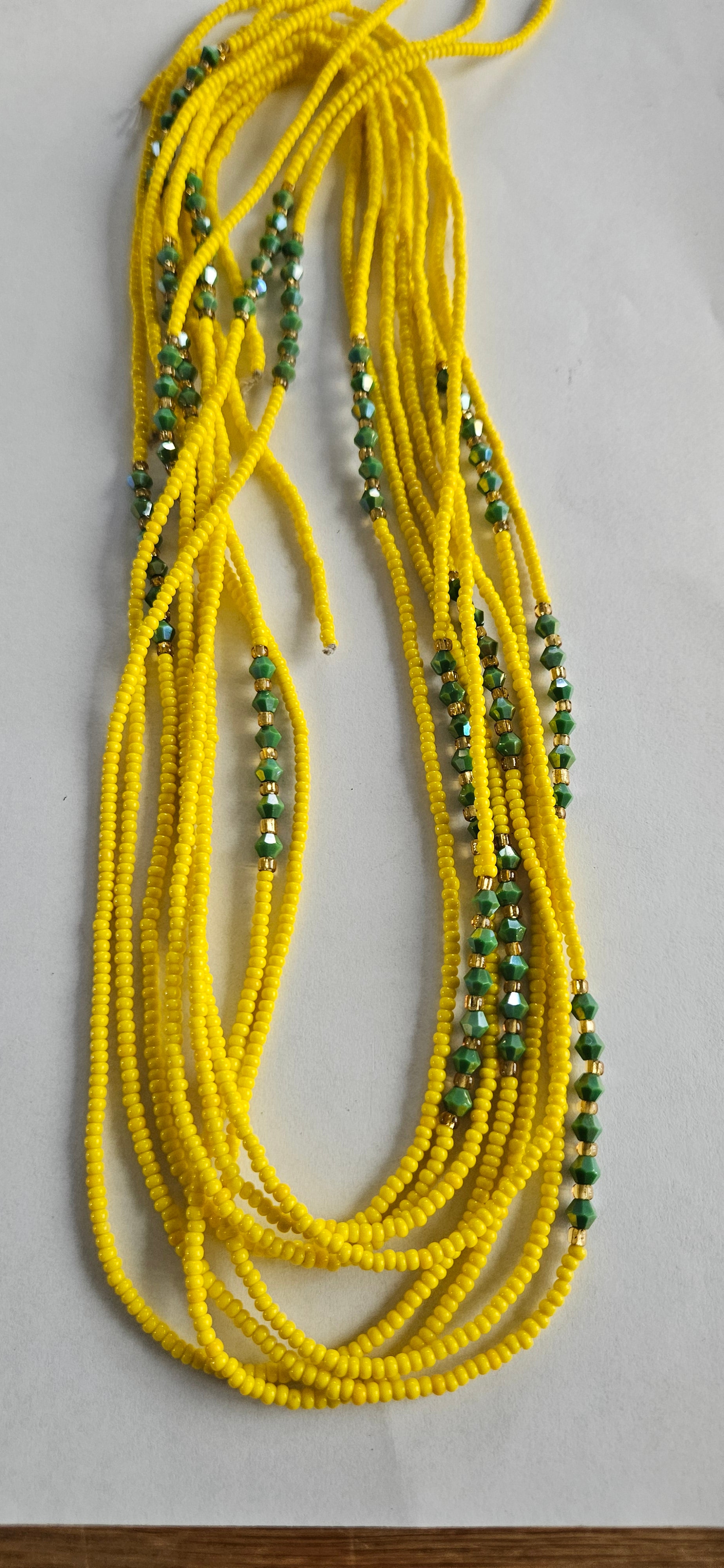 Voeg een vleugje Ghanese cultuur en elegantie toe aan uw stijl met onze prachtige Ghanese taillekralen. LET OP:  ketting moet u zelf vast maken is niet van elastiek.
