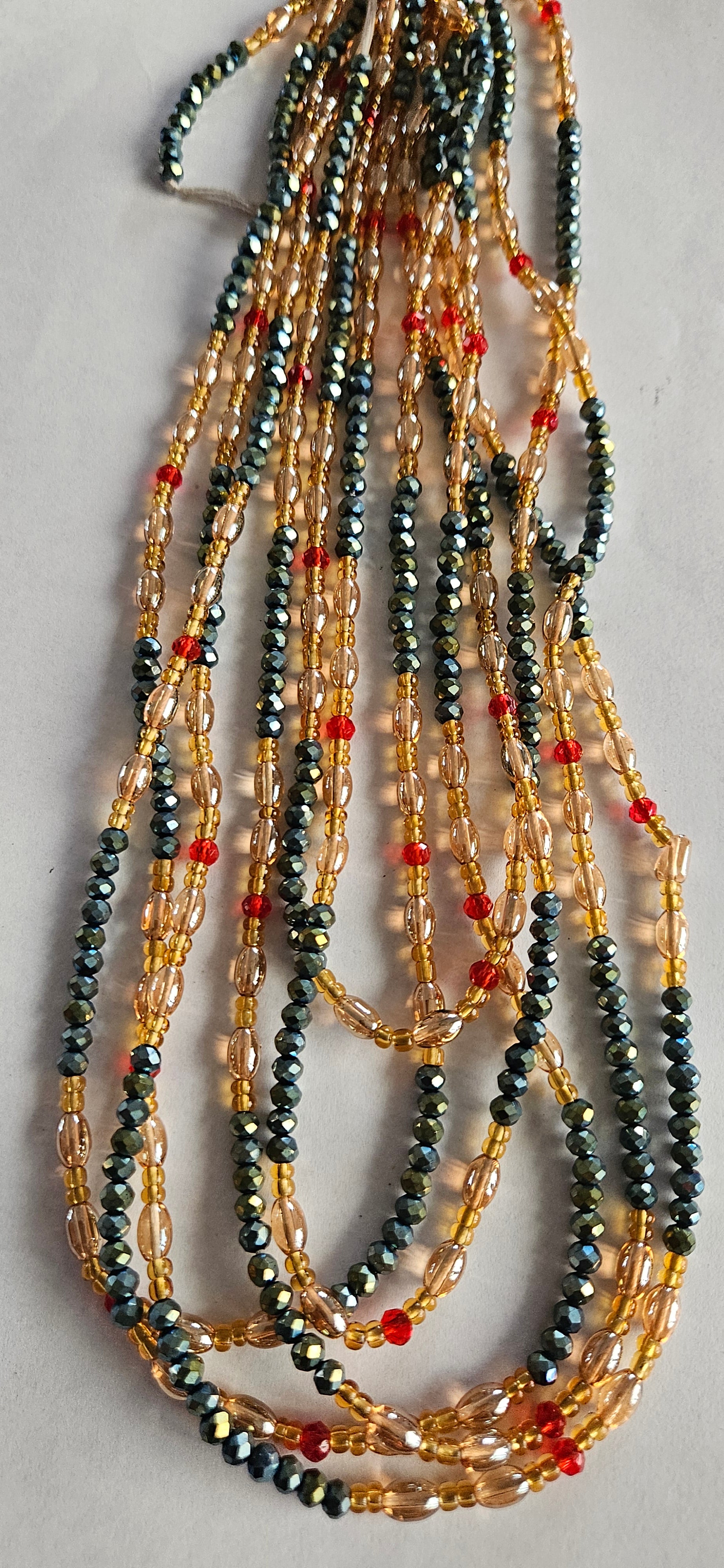 Voeg een vleugje Ghanese cultuur en elegantie toe aan uw stijl met onze prachtige Ghanese taillekralen. LET OP:  ketting moet u zelf vast maken is niet van elastiek.