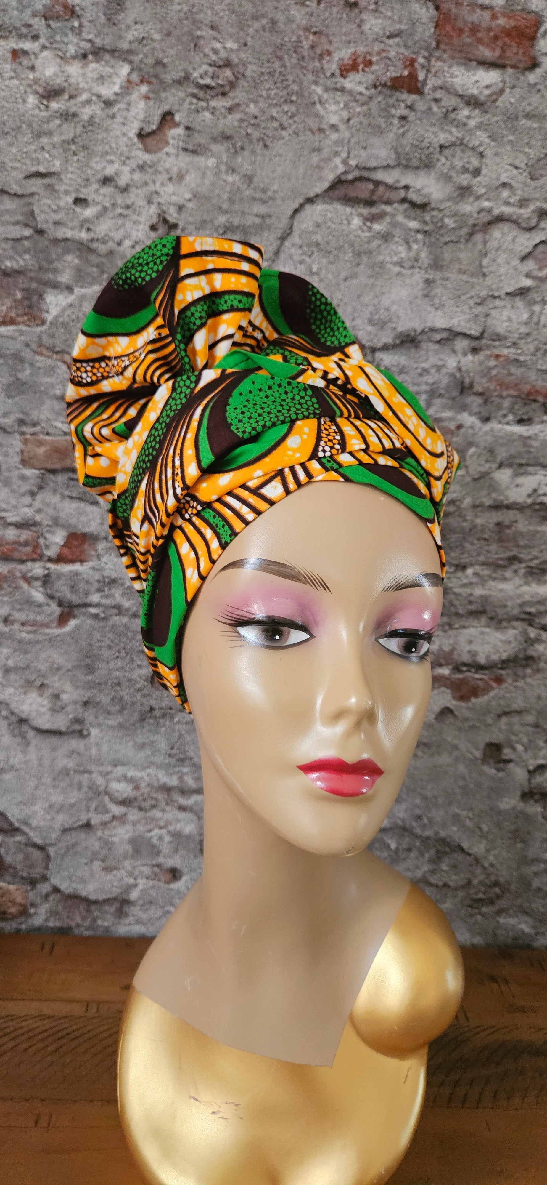 Met zijn kleurrijke Afrikaanse print heeft deze high-impact headwrap een gedurfd Afrikaans ontwerp dat moeiteloos je favoriete ensembles overdag en 's avonds zal aanvullen en verfraaien.