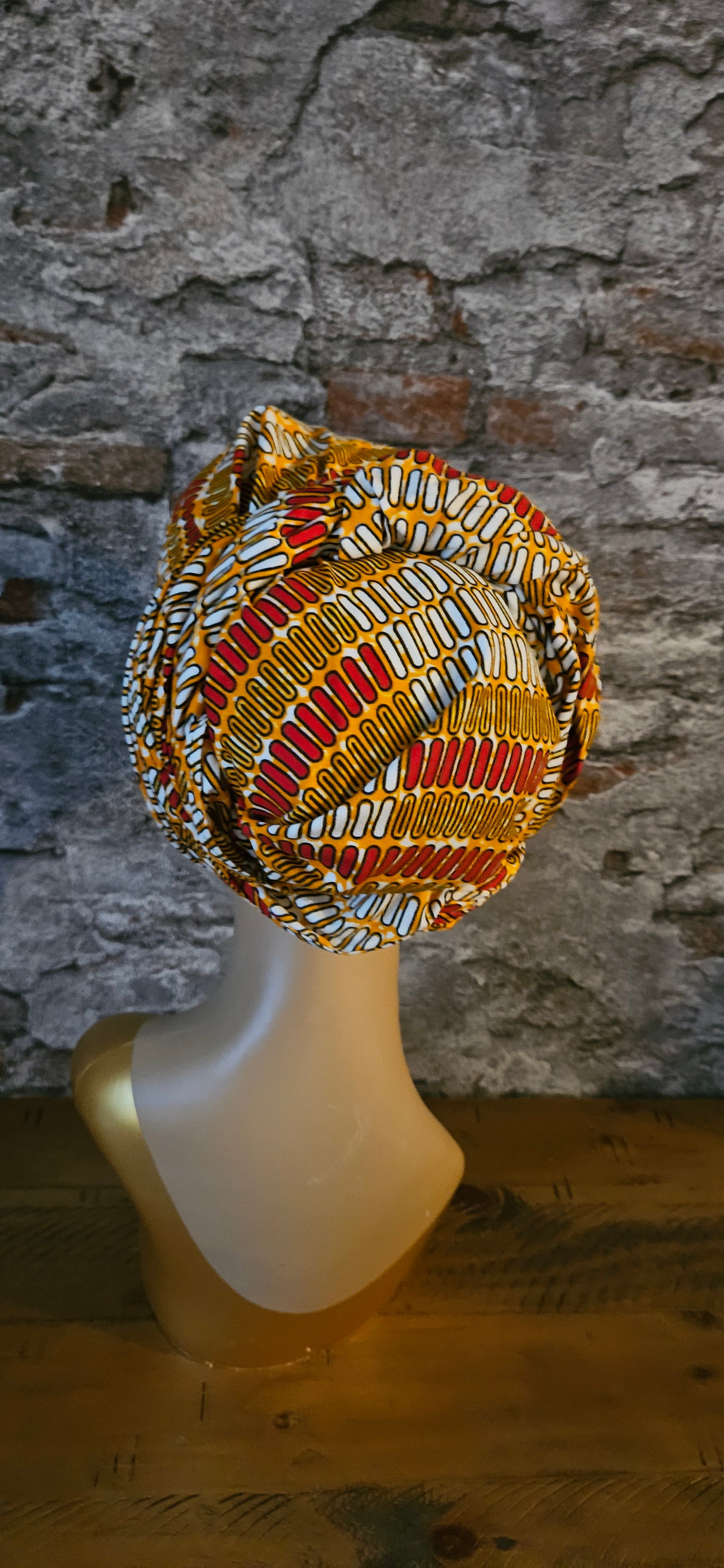 Deze headwrap met Afrikaanse print combineert een aantal kleurrijke kleuren en een diverse Afrikaans patroon en is praktisch, veelzijdig en indrukwekkend.