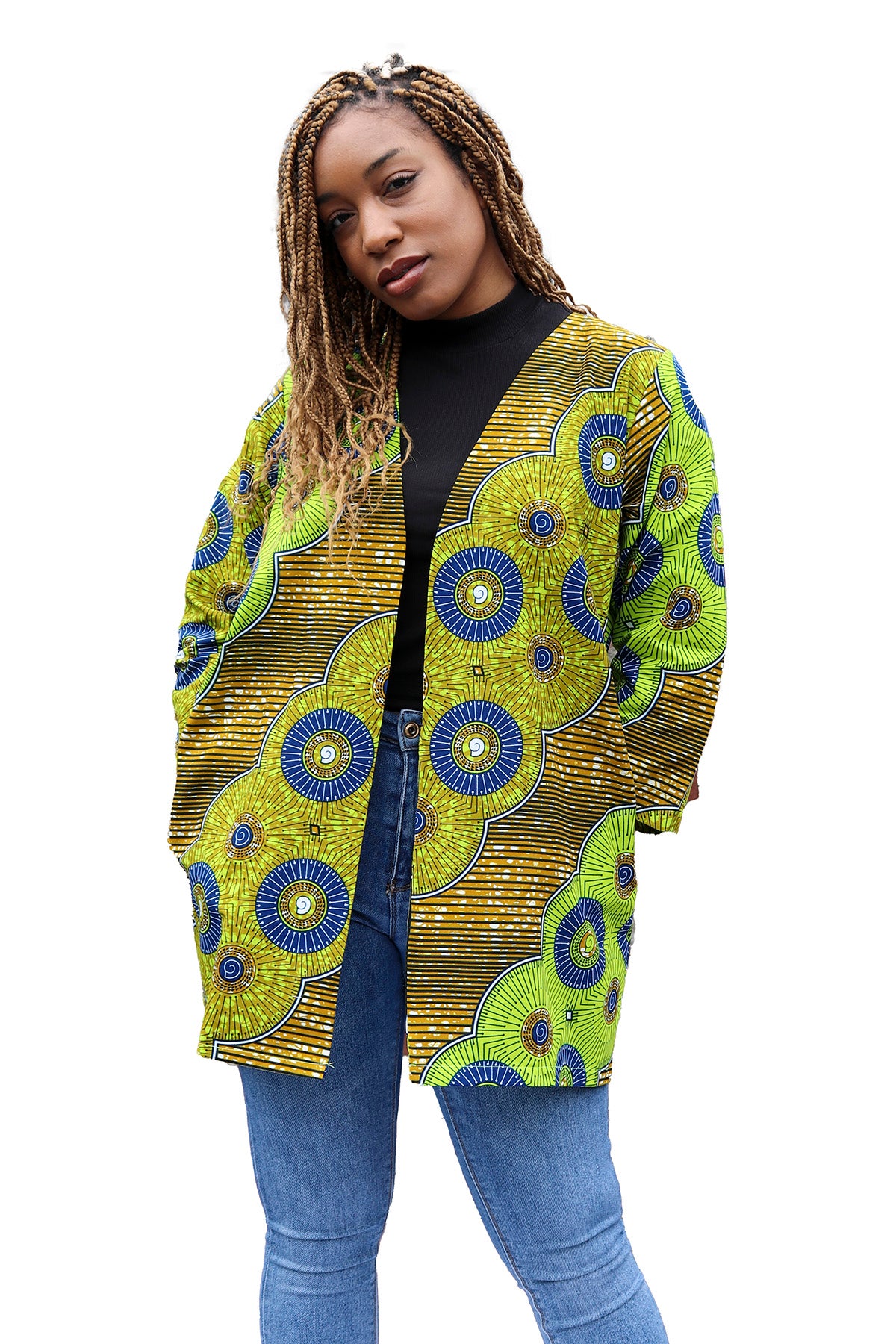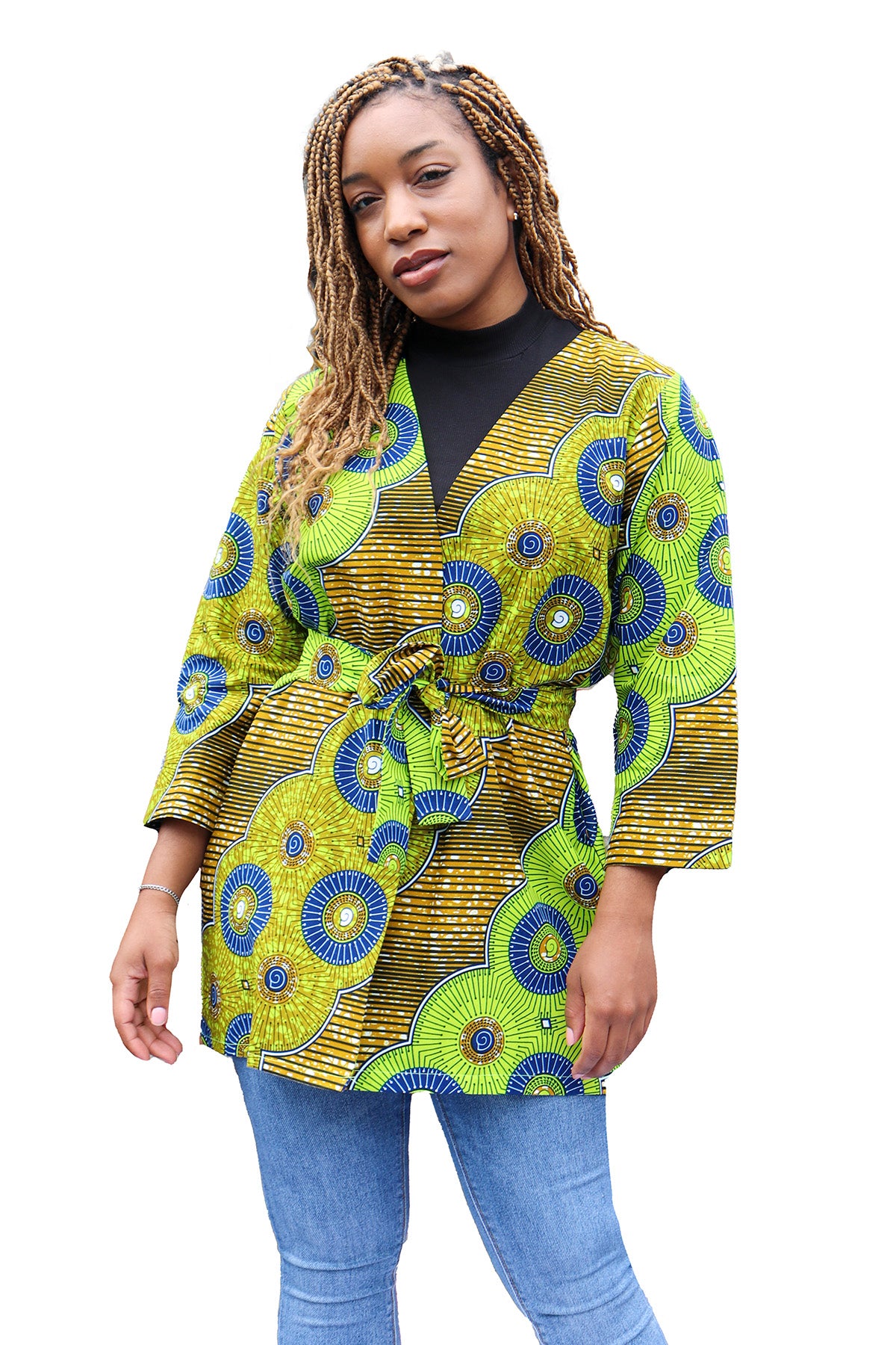 Deze handgemaakte Afrikaanse print kimono vest op boven knielengte met uitlopende wijde lange mouwen is gemaakt van 100% hoogwaardig wax katoen stof. Ook verkrijgbaar in diverse print!