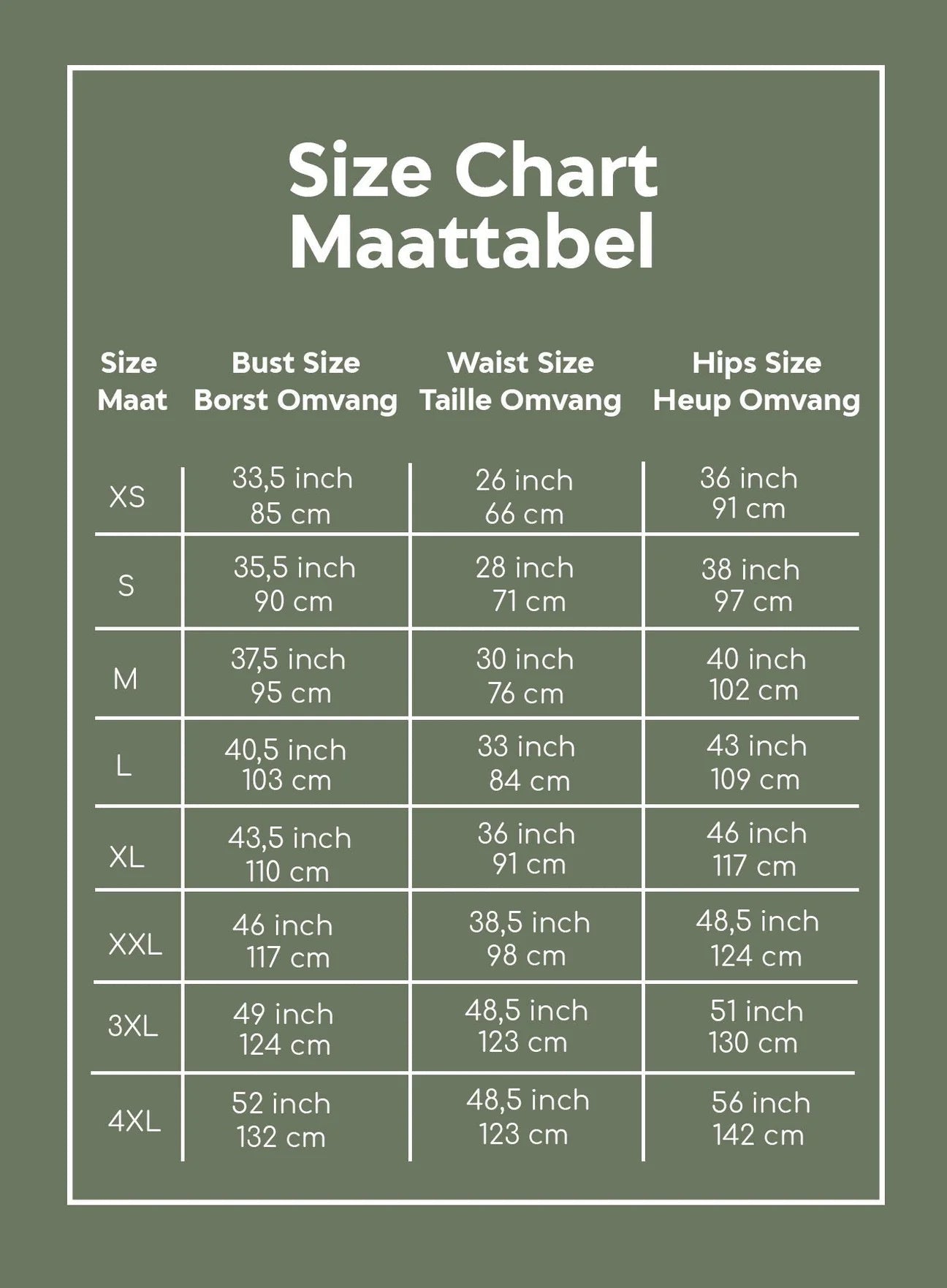 Zoek altijd eerst je maten op in onze maattabel (laatste foto) voordat je een maat kiest. Staat uw maat er niet bij, neem dan contact met ons op