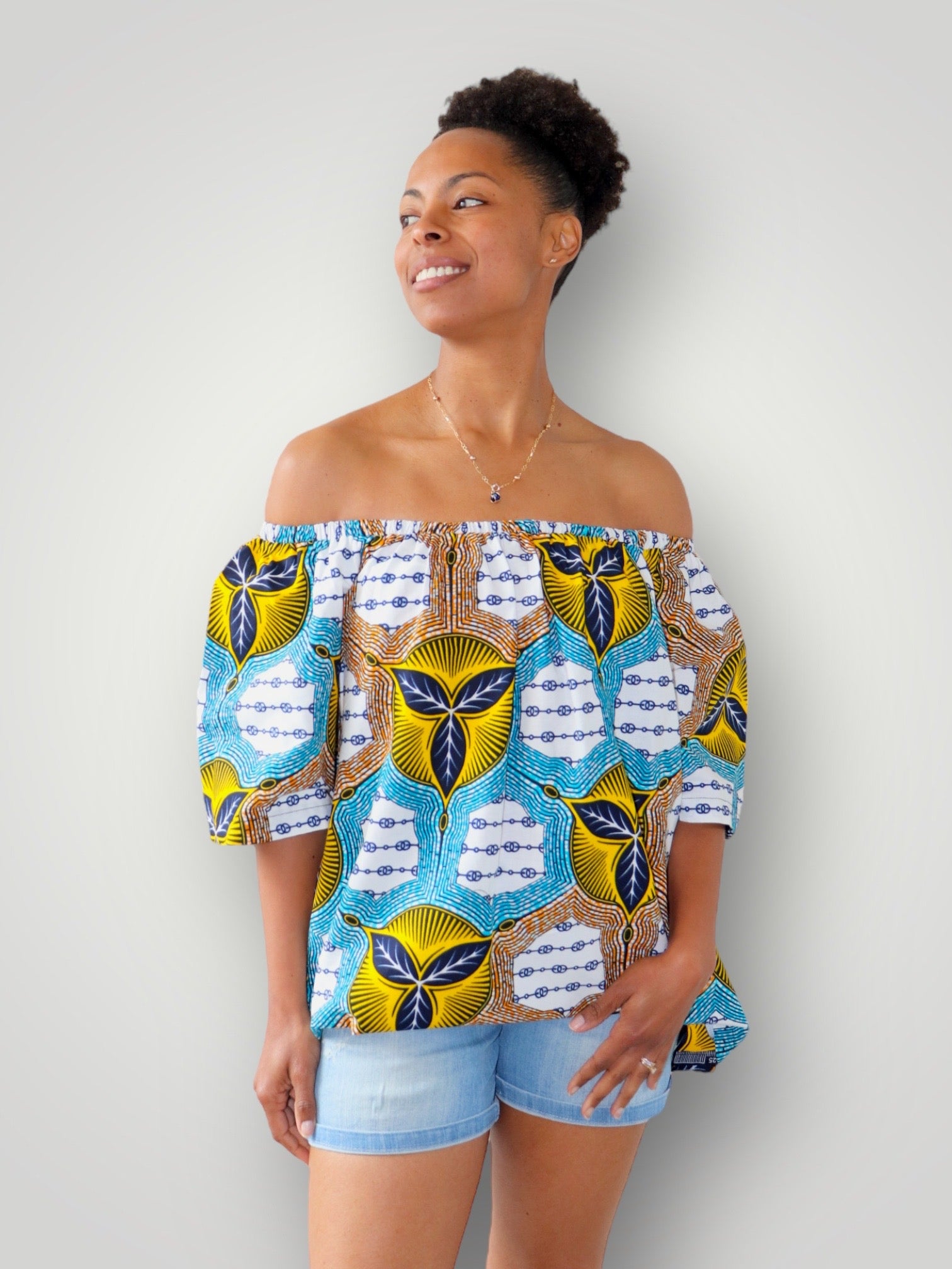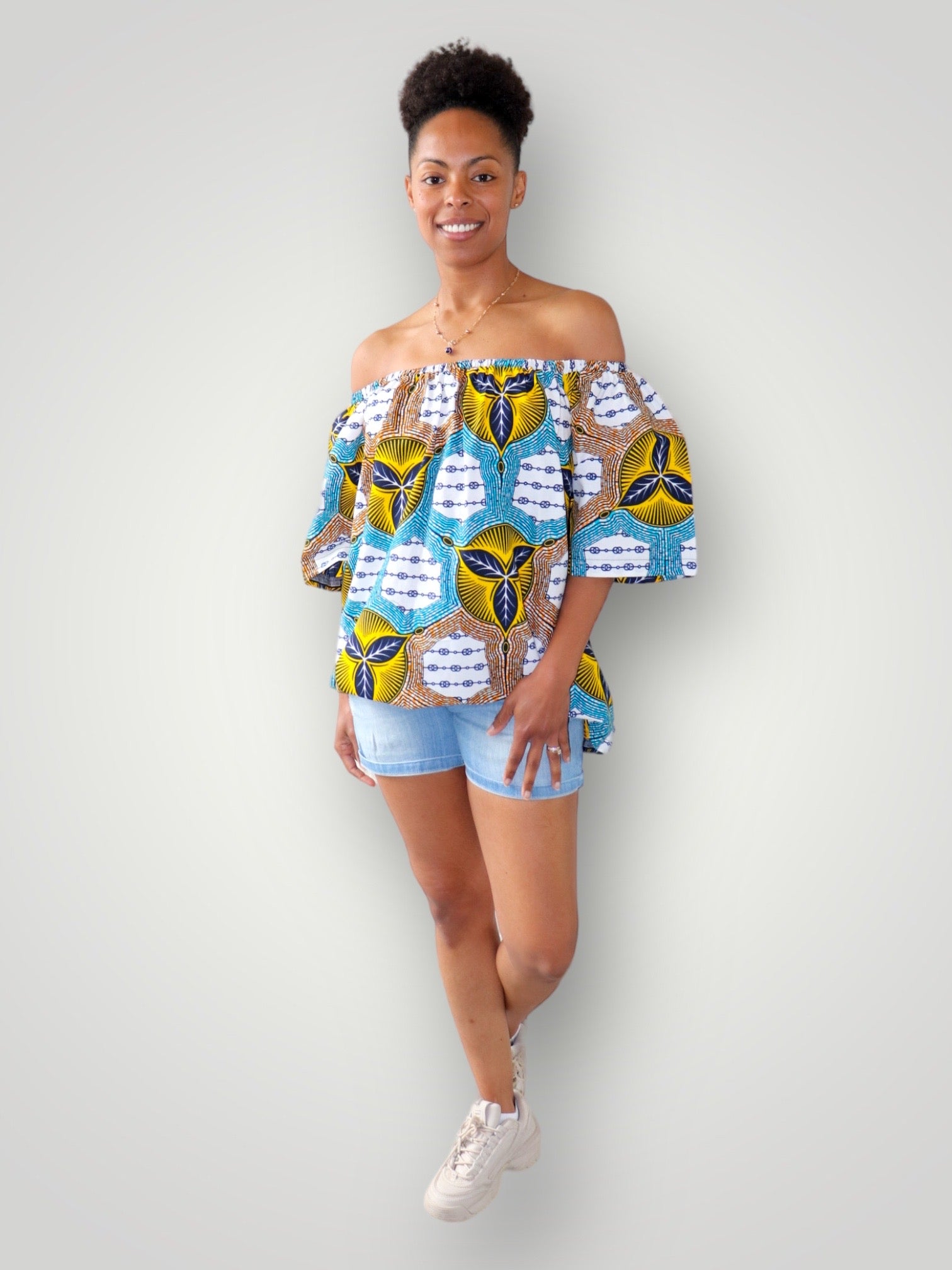 Deze handgemaakte off shoulder korte mouwen top van Afrikaanse print is gemaakt van 100% hoogwaardig wax katoen stof. Ook verkrijgbaar in diverse print!