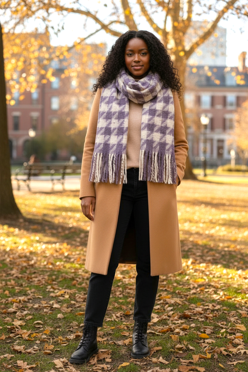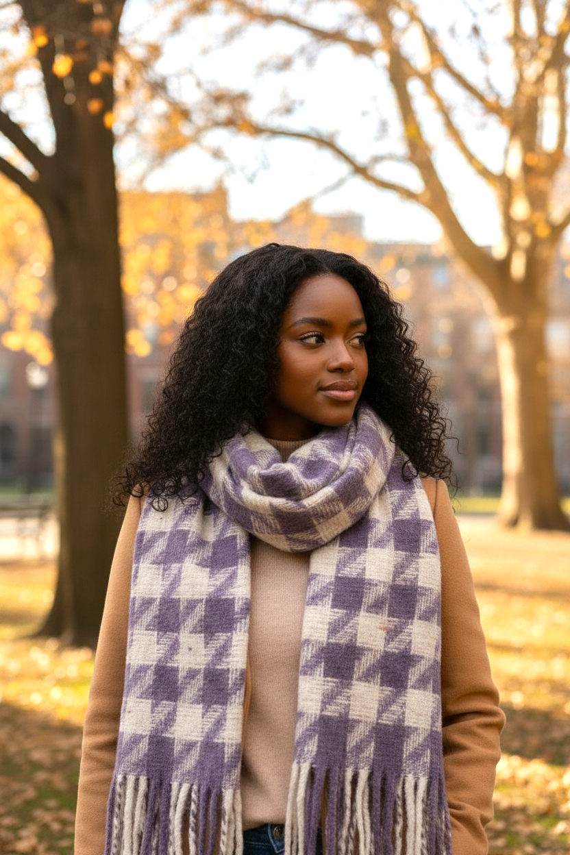 Materiaal: 100% polyester damessjaal met plaid en franjes